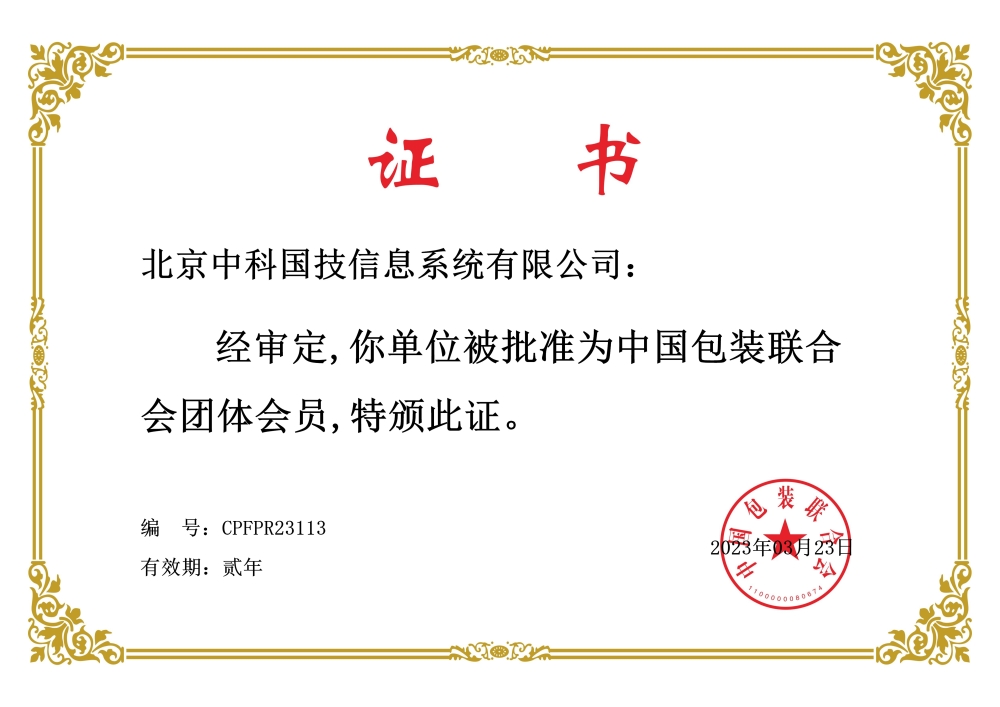中科国技于2023年3月被批准为中国包装联合会团体会员。
